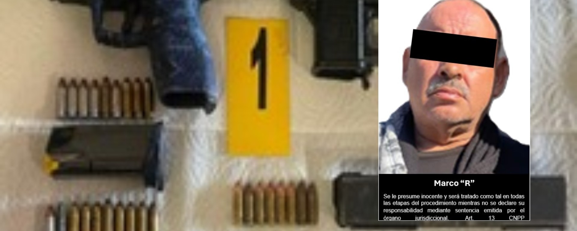 Durante la diligencia, los agentes aseguraron a Marco “R”, además de clorhidrato de metanfetamina, dos pistolas, una con 10 cartuchos y otra con ocho cartuchos, así como dos cargadores con un total de 16 cartuchos, todos presentados como elementos de prueba.