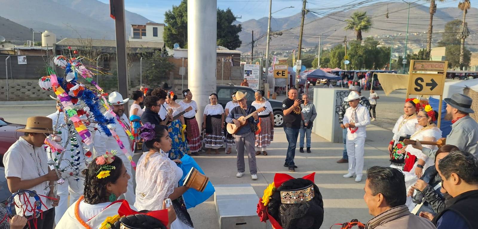 La escena, explicaron asistentes, retomó elementos típicos de la celebración veracruzana: vestidos blancos, fandango comunitario y música de jarana, en una adaptación hecha para el contexto fronterizo y la convivencia en colonias de Tijuana.