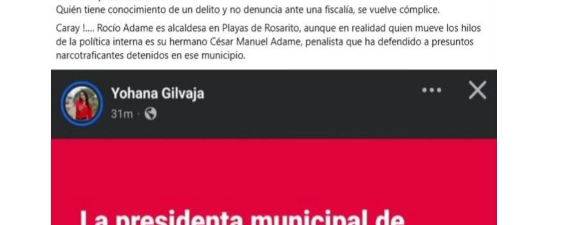 El contenido señalado en la queja corresponde a un texto publicado en redes en el que se cuestiona el entorno político de la alcaldesa y se menciona a un familiar, además de aludir a la obligación de denunciar delitos ante autoridades. Ese mensaje se vinculó al contexto de una expresión atribuida a la diputada del Partido del Trabajo en Baja California, Yohana Sarahí Hinojosa Gilvaja, en una controversia pública registrada en diciembre de 2025.